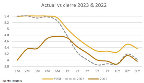 • Esto trae como resultado que los rendimientos de los bonos a 10 años han alcanzado niveles significativamente más altos, lo que ha generado pérdidas para los inversores que habían anticipado un entorno de tasas mas bajas.